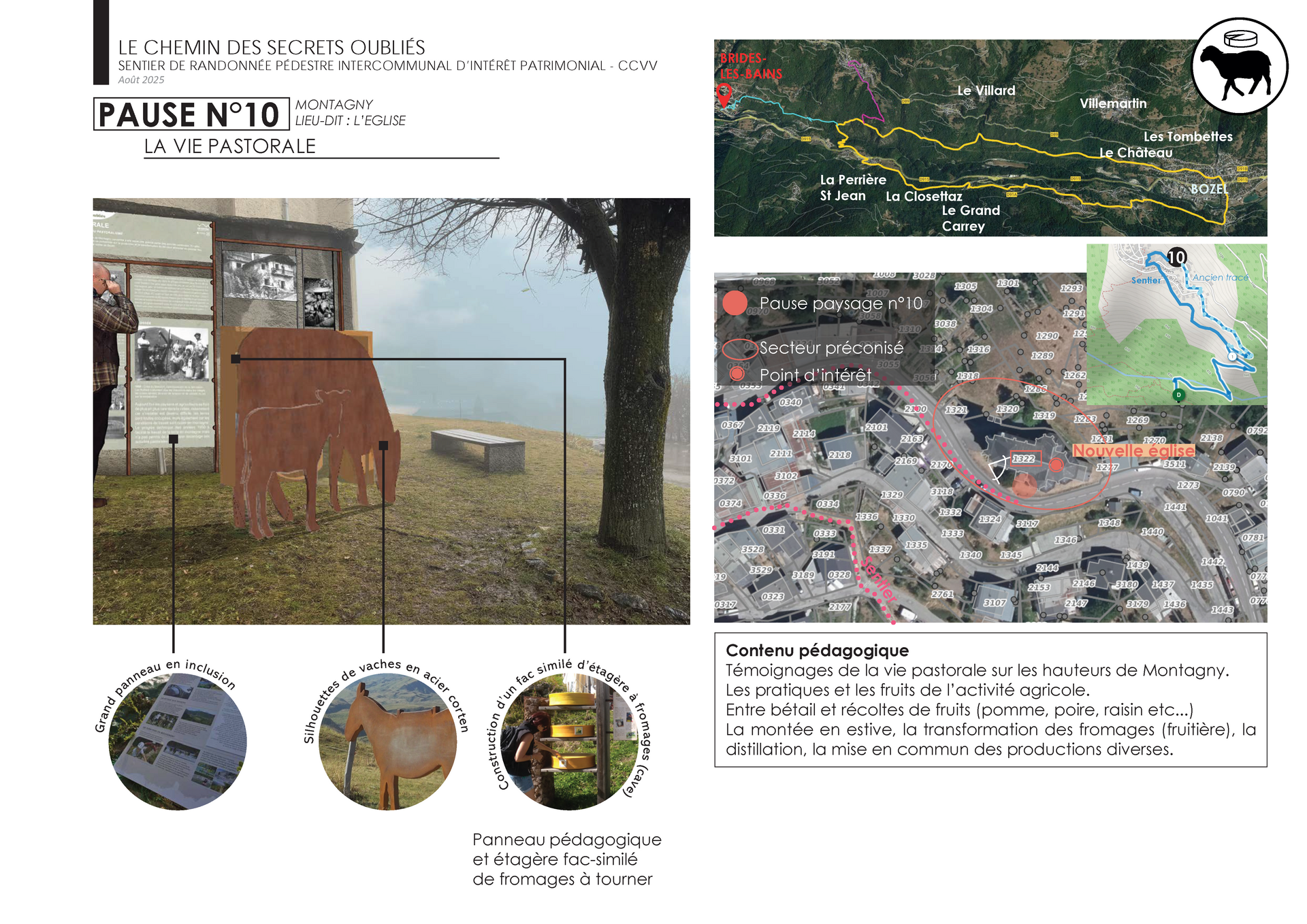 Le sentier des Secrets oubliés sera une invitation à découvrir le patrimoine du territoire grâce à 10 pauses paysages et 12 points d’intérêt intermédiaires, pour une immersion dans l’histoire, la vie quotidienne et les paysages de la vallée. À chaque halte, des panneaux clairs, des anecdotes à écouter ou des contenus ludiques vous plongeront dans les secrets qui vous entourent.