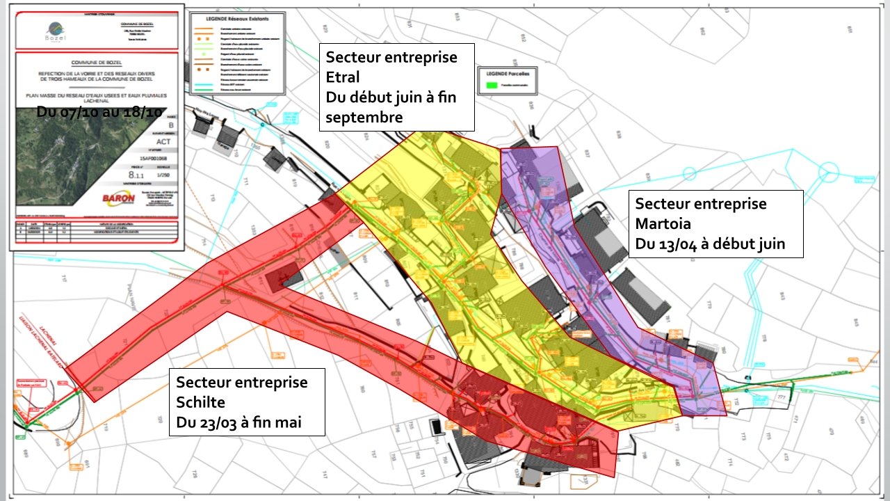 Carte avec les secteurs de travaux dans le hameau de Lachenal :