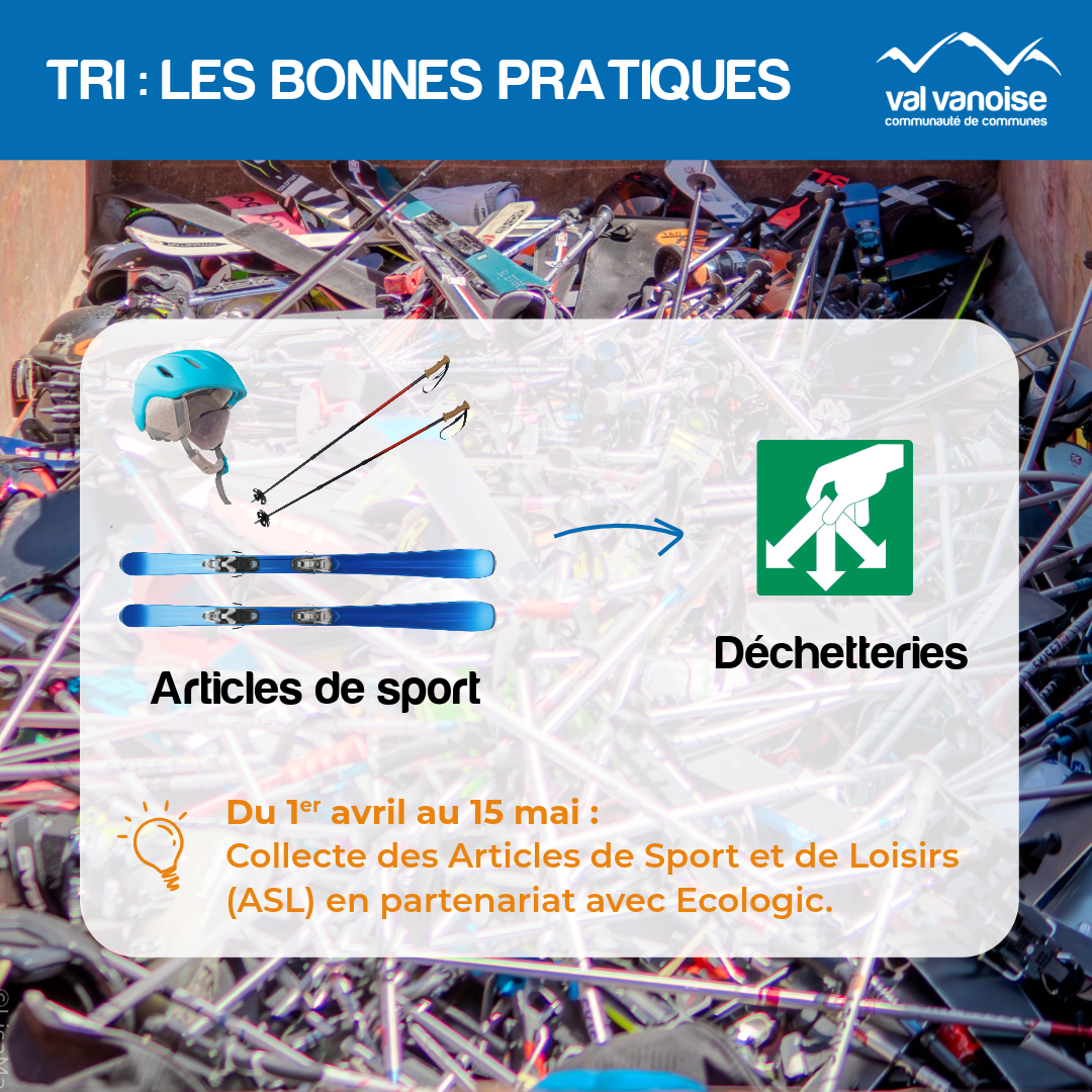 Val Vanoise renouvelle son opération de collecte des Articles de Sport et de Loisirs (ASL) en partenariat avec Ecologic.